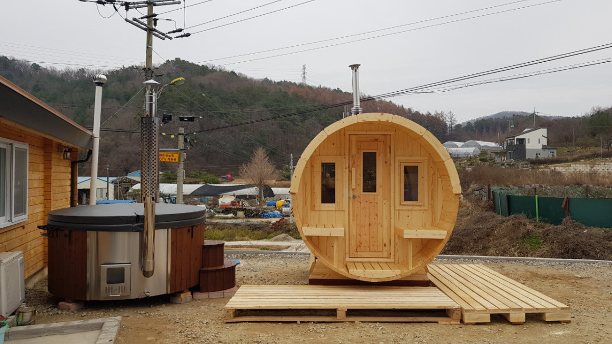 • S externími kamny – klasické řešení, kdy jsou kamna umístěna mimo sud a propojena potrubím. Snadný přístup ke kamnům a tradiční způsob ohřevu.