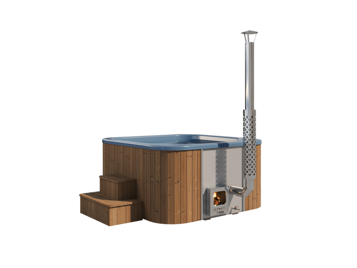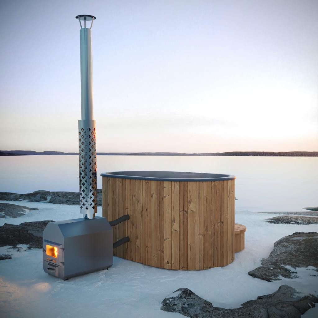 Základní sestava obsahuje: interní či externí nerezová kamna na dřevo, schůdky, laminátovou koupací vložku