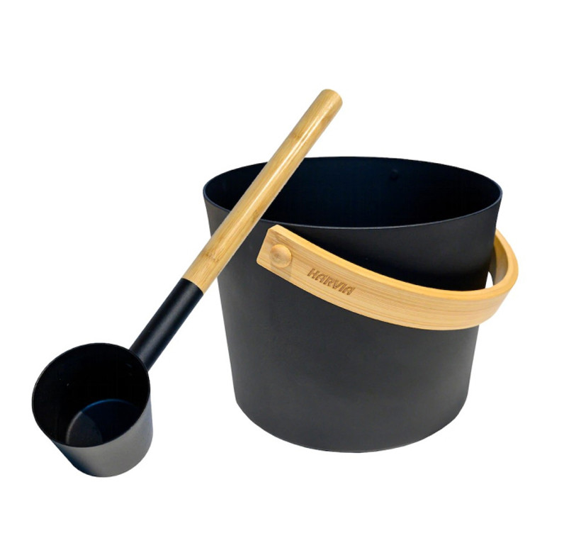 Vědro do sauny je vyrobeno z ocele a opatřeno dřevěným madlem, díky kterému je manipulace s ním bezpečnější a příjemnější. Madlo je tvořeno kombinací dřev dvou různých barev - světlejší ve spodní části zajímavě kontrastuje s řemeslným vzhledem ocelového "koryta" a horní válcová část v černé barvě je zvláště uzpůsobena pro příjemné držení a snadnou údržbu.